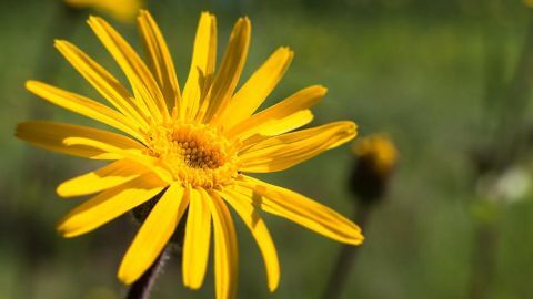 Beschreibung: Arnika (Arnica montana) ist eine Pflanze, die auf ungedüngten Bergwiesen und kalkarmen Moorböden wächst. Obwohl sie oberflächlich betrachtet eher filigran wirkt, ist sie genau besehen eine sehr kräftige Pflanze: Sie hat feste, behaarte Blätter, einen starken, festen, meist 30-40 cm hohen Stängel, der sich nirgendwo anlehnen muss, sondern von alleine steht – auch im kräftigen Wind des Hochgebirges. Ihre leuchtend gelbe Blüte ist nicht symmetrisch angeordnet, sondern eher „unordentlich“, zerzaust. Wurzel und Grünpflanze sind gleichermaßen wichtig und heilkräftig. Sie gedeiht am besten in frischen, feuchten Wiesen auf kieselhaltigem Boden unter intensivem Sonnenlicht.